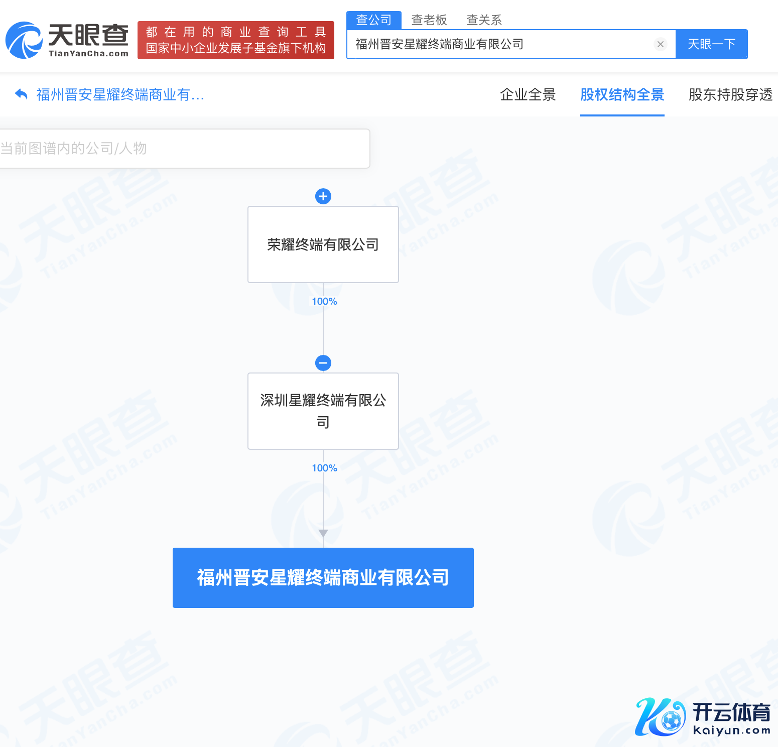 南边财经12月27日电,天眼查App裸露,近日,福州晋安星耀末端买卖有限公司树立,法定代表东说念主为文洁,注册成本50万东说念主民币,决议界限含出动末端开垦销售、家用电器销售、电子居品销售、智能机器东说念主销售、智能无东说念主翱游器销售、收罗开垦销售等。股权全景穿透图裸露万博manbext网站登录app娱乐,该公司由深圳星耀末端有限公司全资捏股,后者为荣耀末端有限公司全资子公司。