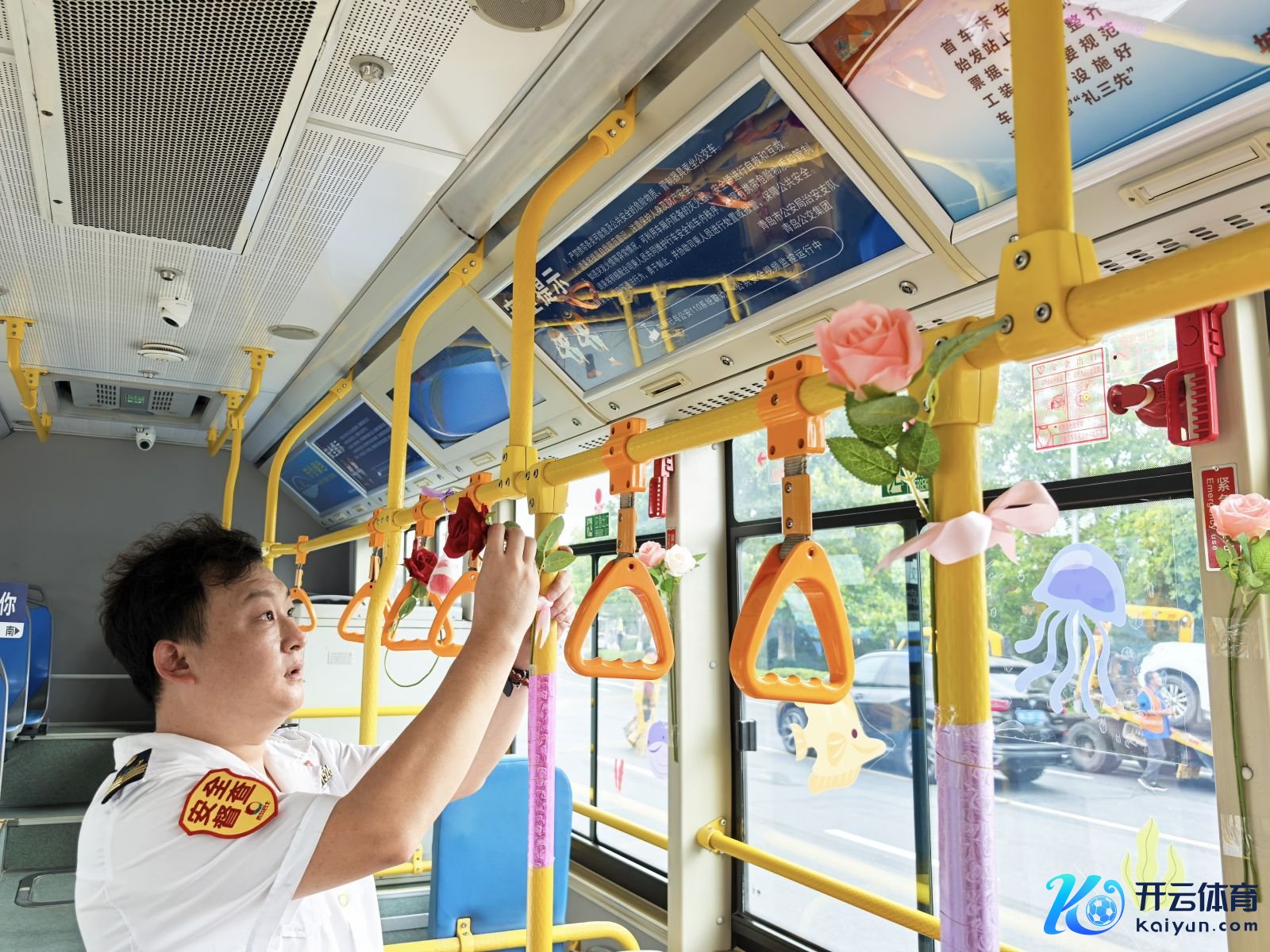 驾驶员崔金龙为了给乘客营造十分的七夕出行体验,他提前尽心准备,用彩色丝带将一朵朵秀好意思的玫瑰花缠绕在车厢扶杆上,傍边还吊挂着可人的玩偶挂饰,二者瑕瑜分明,温馨感鬼使神差。车窗边杂沓有致地摆放着玫瑰,阳光透过玻璃洒在花瓣上,为扫数车厢增添了直快气味。一张写有“七夕相伴,公交同业”的主题海报,更是点明了节日主题,让扫数车厢齐千里浸在节日的温馨氛围中。
