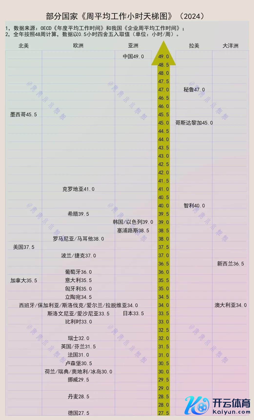 在此,作家将列国的年平均使命工夫,按照48周换算为周使命工夫。为何袭取48周?全年52周,要扣除10来天的法定公众假期和10来天的个东说念主带薪假期,平均下来,48周是更接近确切情况的数据。