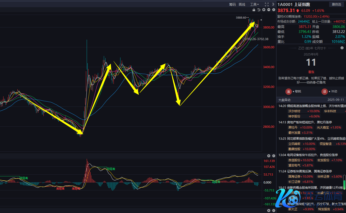 通盘9月份A股便是一件事,便是看上证指数阻力位3888点能否冲突,昨天A股冲的很高,今天看能否冲突3888点, 一说念加油啦!