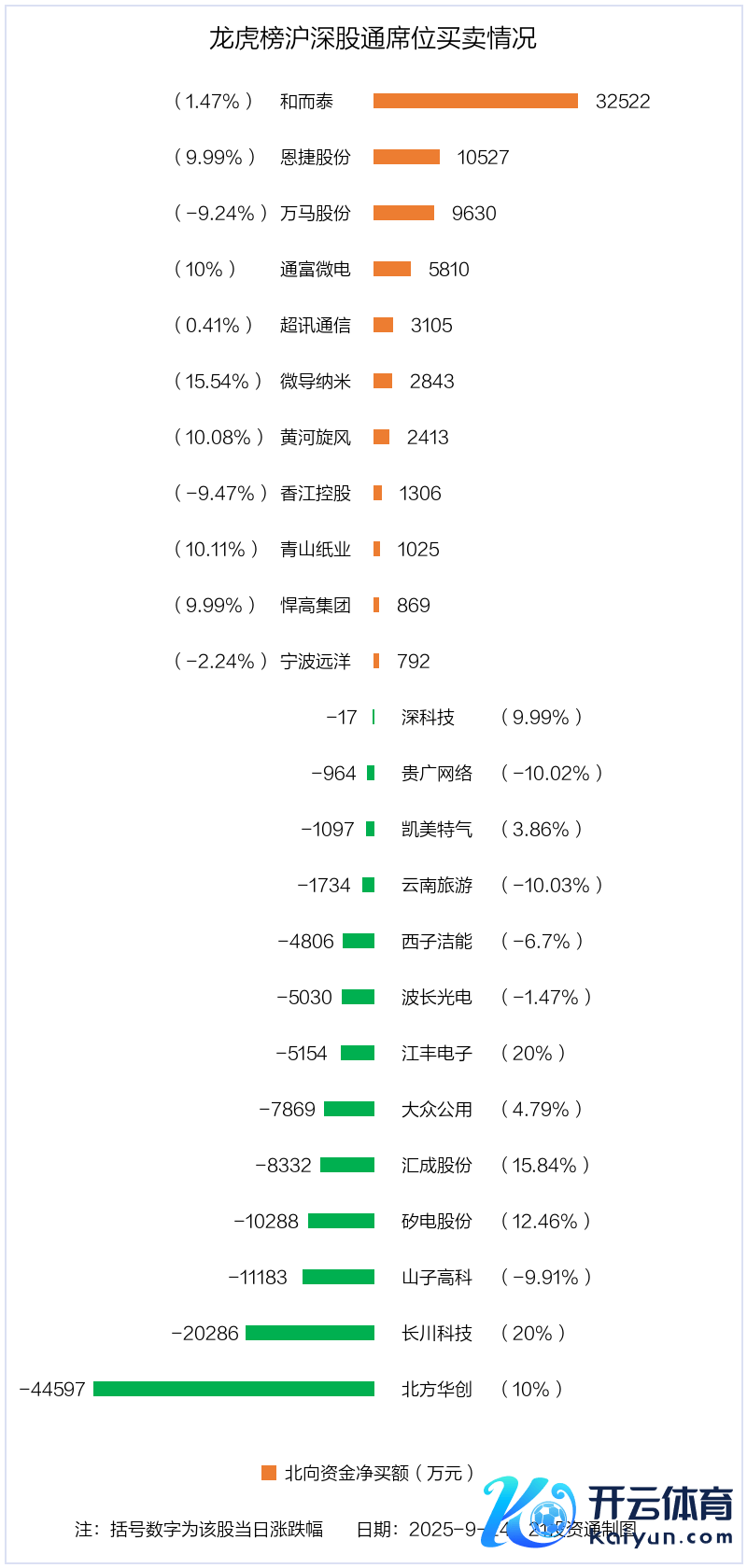 北向资金净买入11股,净卖出13股9月24日,北向资金参与龙虎榜中的个股共有24只,系数净卖出5.05亿元。其中沪股通净买入6 股,净卖出3 股,系数净卖出5679.74万元;深股通净买入5 股,净卖出10 股,系数净卖出4.48亿元。