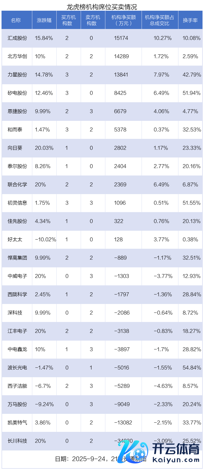 其中,机构净买入金额最多的是汇成股份(688403.SH),当日收盘飞腾15.84%,换手率为10.08%。